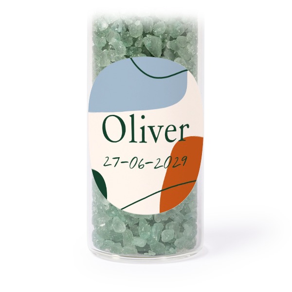 Wählen Sie Ihr Design für Mini-Glasröhrchen Set mit runden Stickern & Badesalz Grün - 12 Stk.