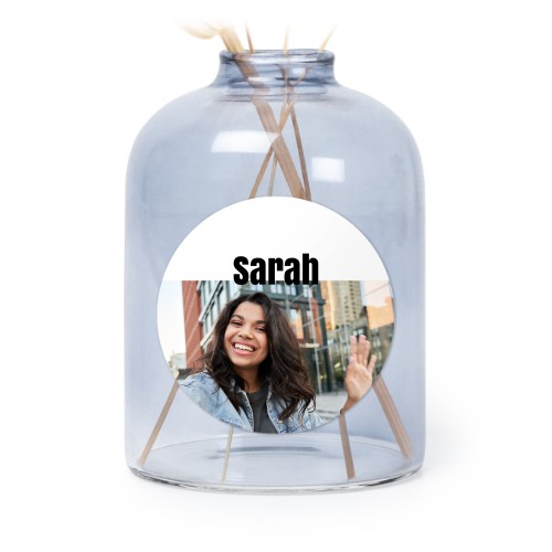 Wählen Sie Ihr Design für Blaue Mini-Glasvase mit runden Aufkleber - 6 Stk.