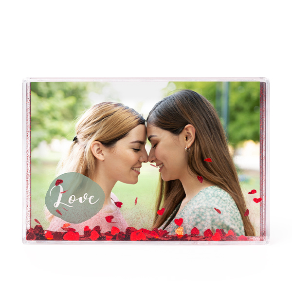 - Acrylic frame filled with glitter