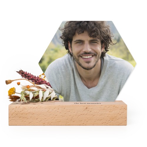 Choose your design for Wooden block with print, dried flowers and hexagonal forex card