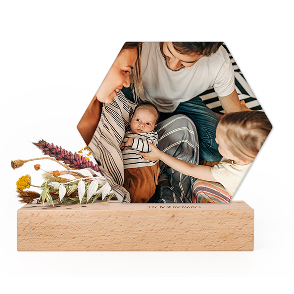 Choisissez votre design pour Forex luxe hexagone sur support en bois personnalisé & fleurs séchées